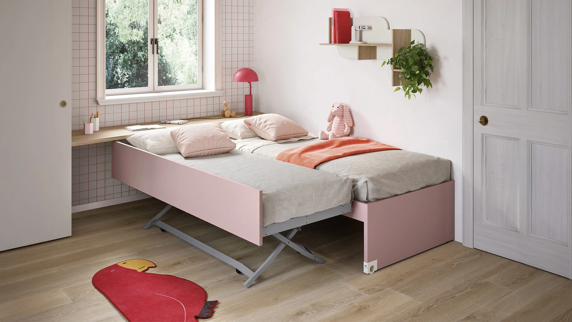 Con questa cameretta Salvaspazio Letti Estraibili Nidi, tra le soluzioni salvaspazio, potrai arredare stanze moderne per bambine.
