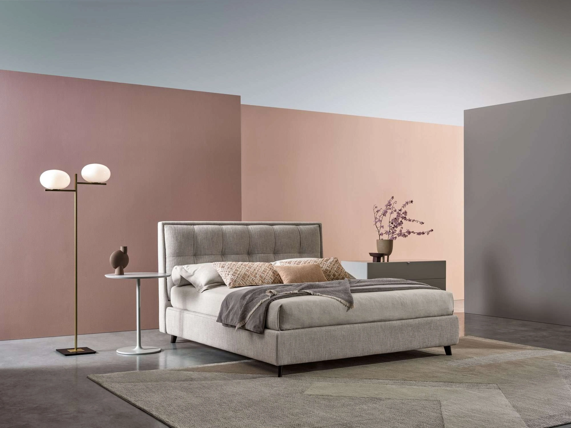 Se vuoi letti matrimoniali imbottiti, ecco qui il modello Venus Lab in tessuto per completare la camera da letto.
