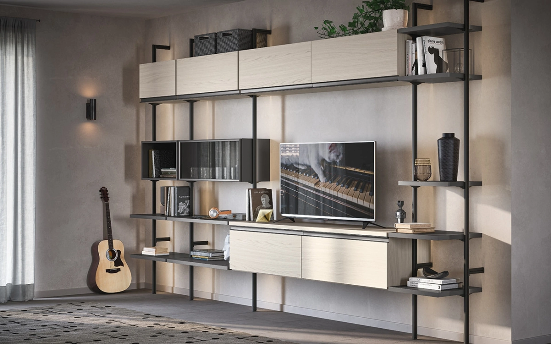 Le Librerie componibili Cinquanta3 sono disponibili in varie forme: angolari, lineari, sospese e realizzabili su misura con molteplici componenti, mensole e vani. La Libreria componibile Uniko di Cinquanta3 in foto, nella variante in melaminico, è davvero versatile e funzionale, robusta e durevole, nonché caratterizzabile secondo le più particolari problematiche abitative. Il living è, in assoluto, la zona della casa dove ci si riposa ogni giorno, discorrendo con amici e parenti, riposando in solitudine nonché guardando la televisione. Contattaci per info e preventivi sul modello mostrato in foto: se desideri ultimare stanze moderne, allora questa libreria dalle forme decise fa al caso tuo. Le Librerie moderne sono sempre particolarmente apprezzate per organizzare il soggiorno e i muri, unendo perfettamente doti di funzionalità e stile.