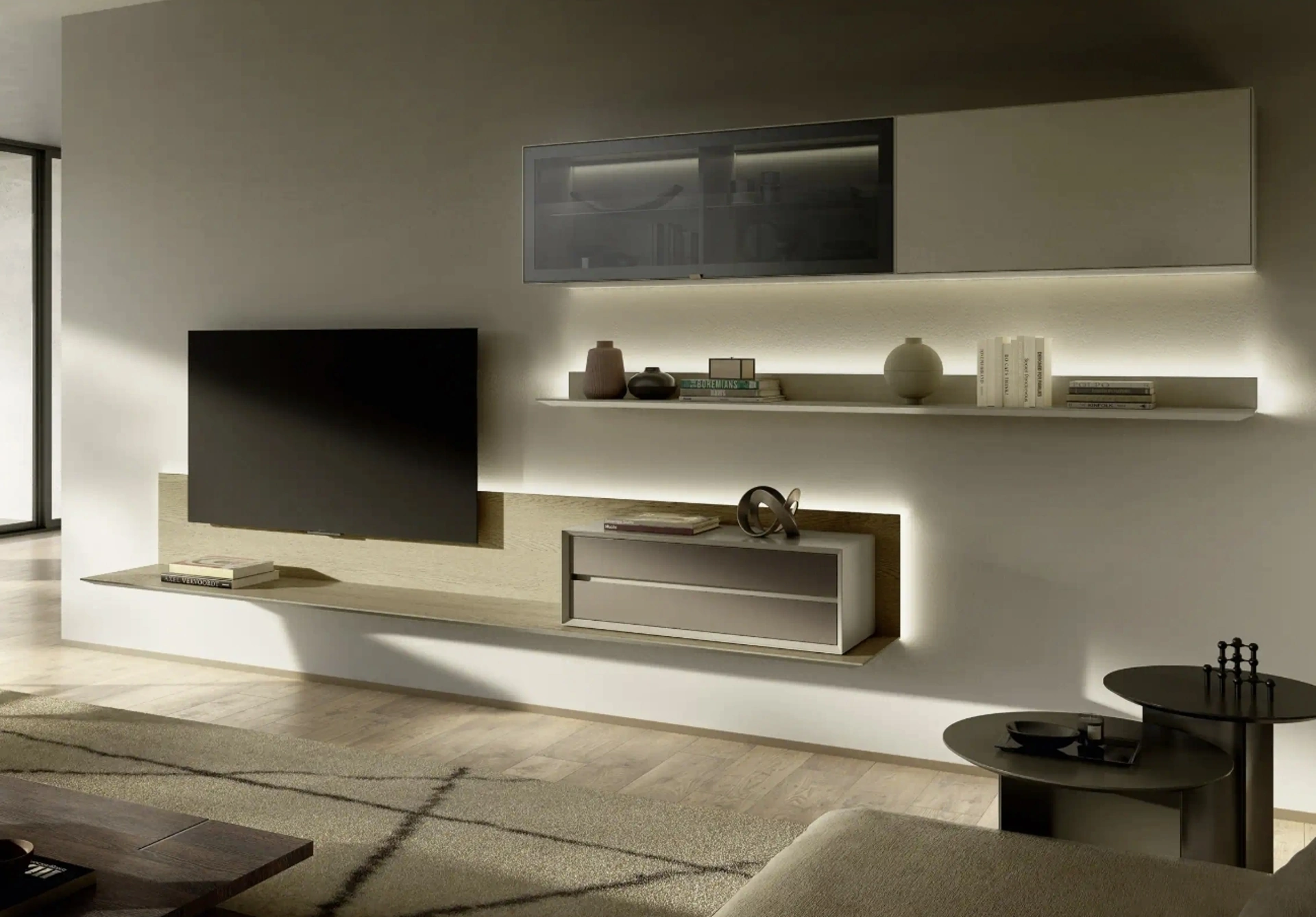 Clicca e scopri di più sulla parete attrezzata Domino 02 dell'azienda Sangiacomo: è la soluzione dalle linee moderne ideale per te.